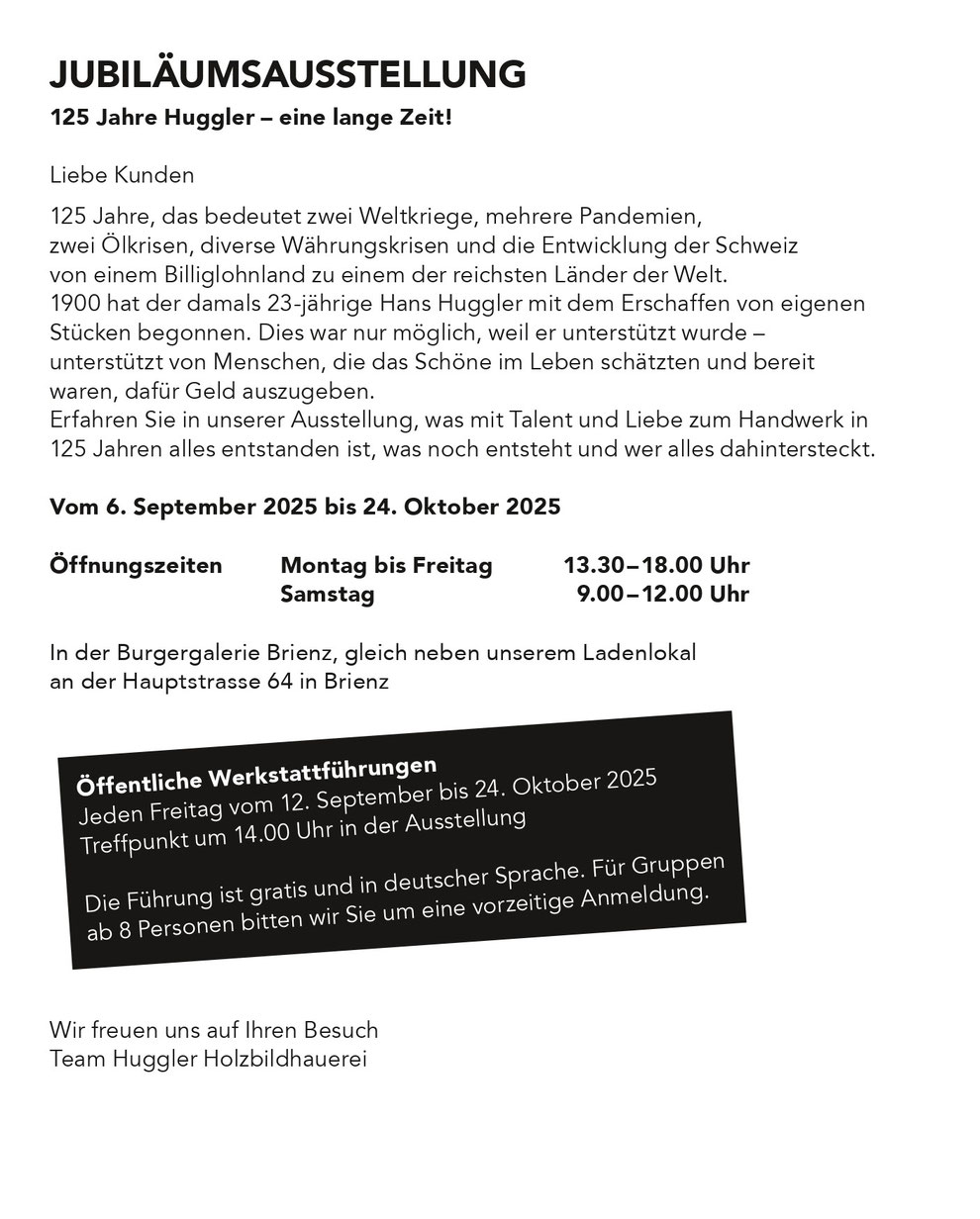 Jeden Sonntag im Juli und August von 11:00-16:00 Uhr